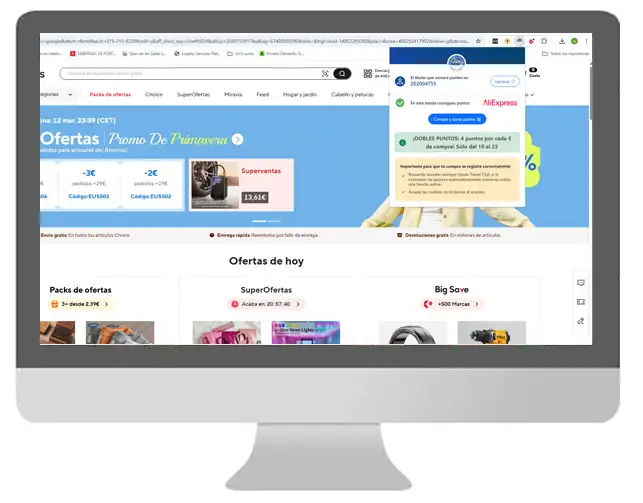 Cada vez que visites una tienda online presente en Travel Club la extensión te avisará para que puedas acceder desde Travel Club y obtener puntos cuando realices tu compra.